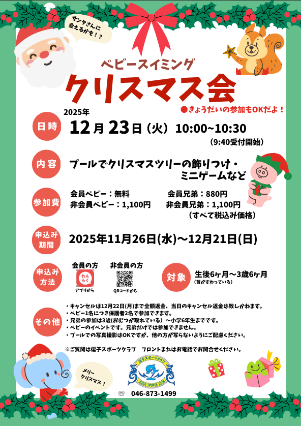 <ベビースイミング クリスマス会イベントのお知らせ>