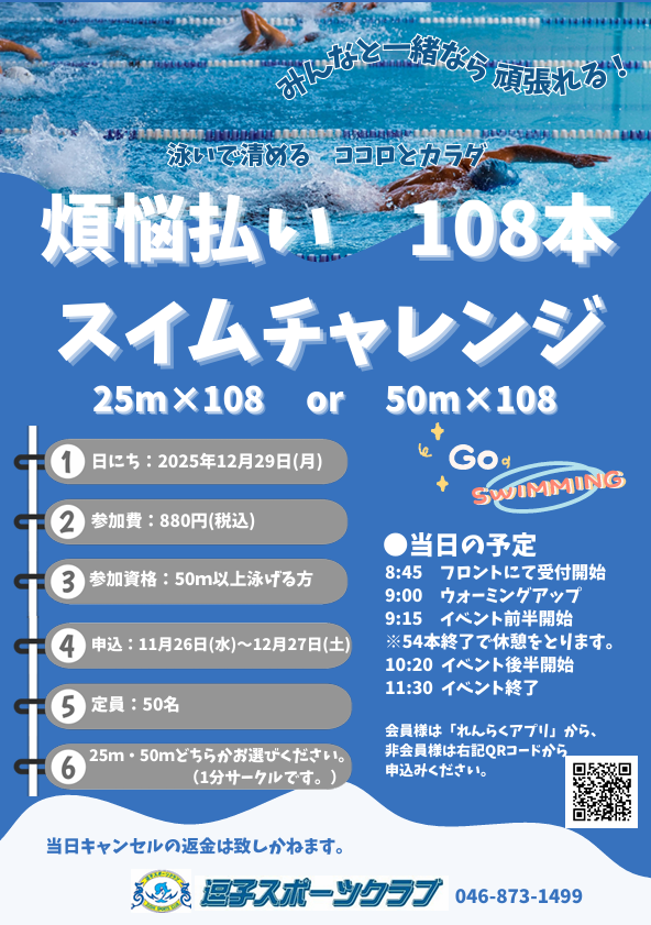 年末恒例! 煩悩払い108本水泳チャレンジ!のお知らせ